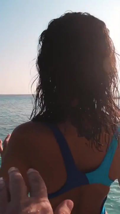 Beautiful chick with a guy on a beautiful beach by the sea