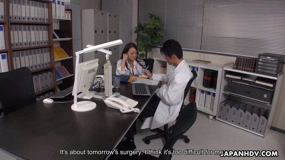 We return to our flirty doctor, Koi Miyamura. Not only is she a doctor, but she is also a teacher to new doctors. She feels that it is part of her responsibility to help the new doctors feel comfortable and relaxed and ready to perform very difficult surgeries. Today we continue on with her student that feels nervous about a new surgery he must perform the next day. She has persuaded him that she knows how he feels and the best thing for him would be to release the pressure he has built up. Koi has asked him to join her in the other room where there is a bed and he can be made more comfortable. She has helped him to take off his pants and is stroking his cock and getting horny with his dick in her hands. She starts to lick him and pulls off his shirt so she can pay attention to his naked body while she uses her hands to stroke his cock. She begins kissing him and uses her tongue on his to get him good and ready for what is coming next. She takes off her clothes to show him her sweet petite Thai figure. She teases him as she slowing removes her panties and spreads her legs as she asks him to lick her nipples while she uses her fingers to get herself hot and wet. This is almost too much for her as he works away on her tits and her fingers rub her cute pink pussy making sure to stimulate her clit. Koi is enjoying this as her student then opens her legs and dives down to get to work with his mouth on that sweet hole hiding between her legs. From there they both are too horny and they get to work doing the real fucking.