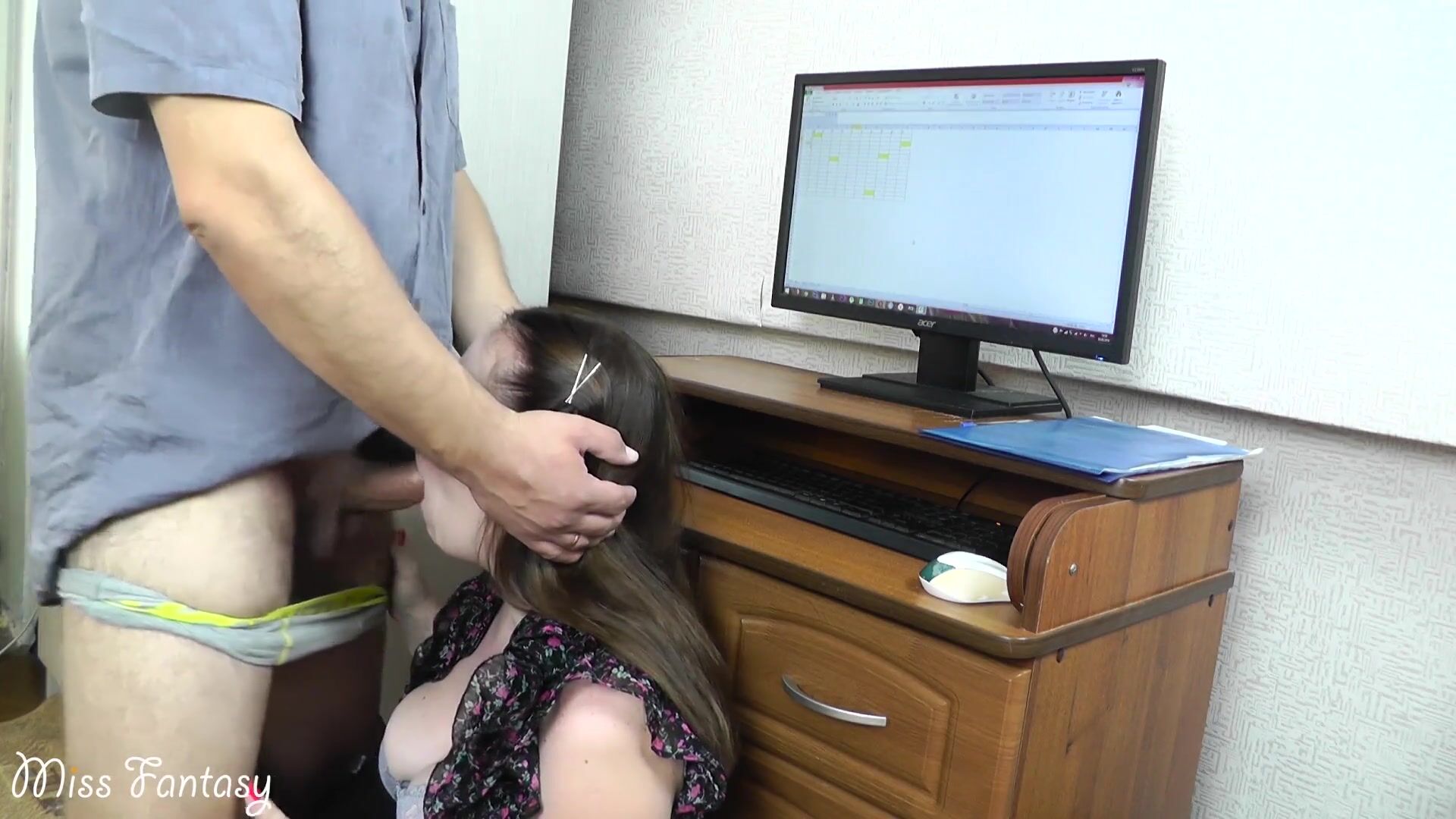 The husband does not even know why his puffy flirty wife receives such a large salary at work. And the bitch just likes to fuck with her boss and get orgasms that hubby does not give her.