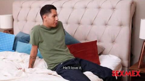 Creampie on big tits stepmom in front of girlfriend