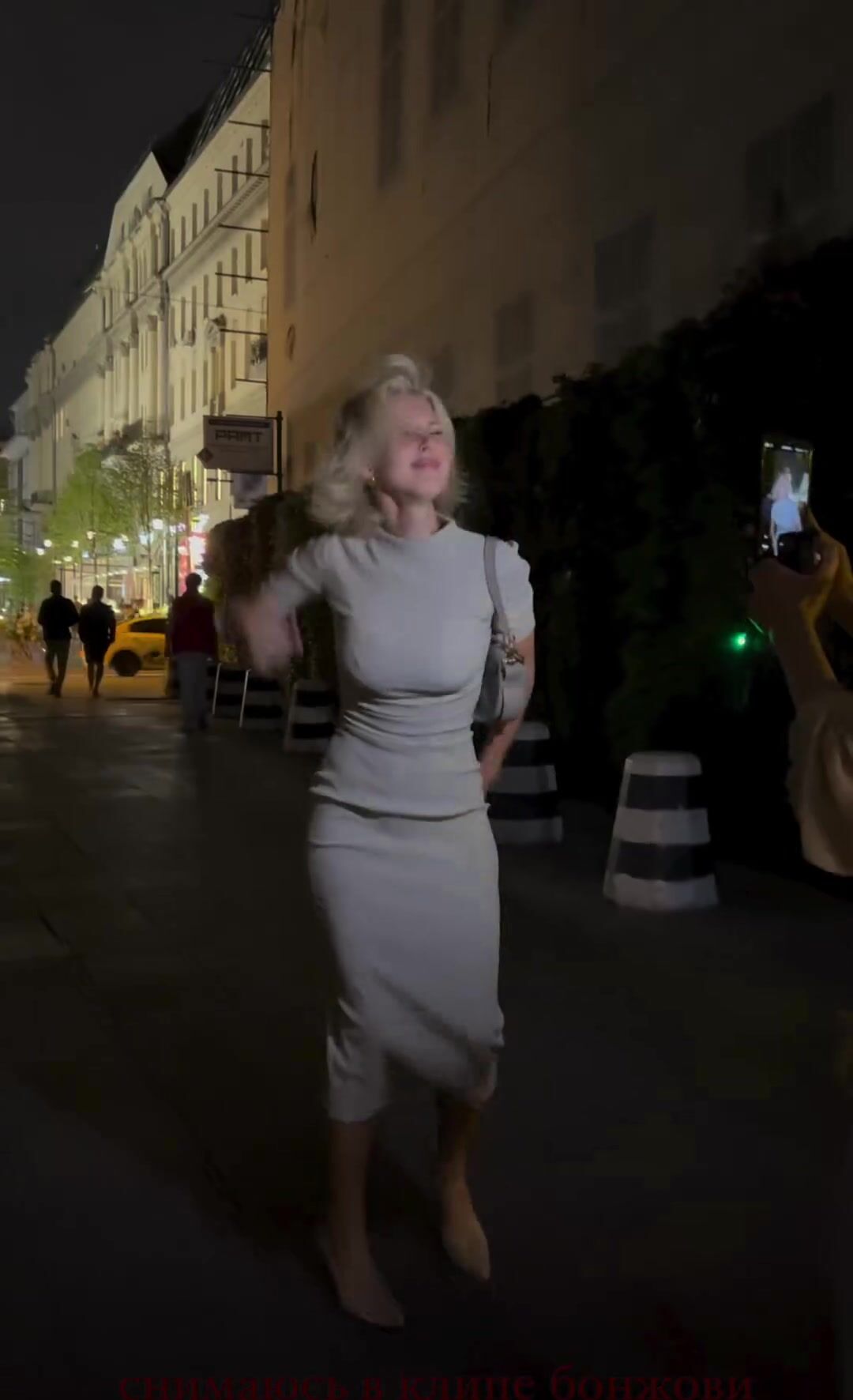 Oksana Streltsova lifts her skirt on set
